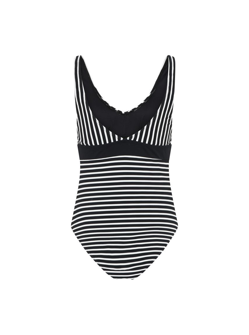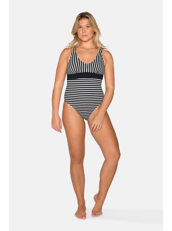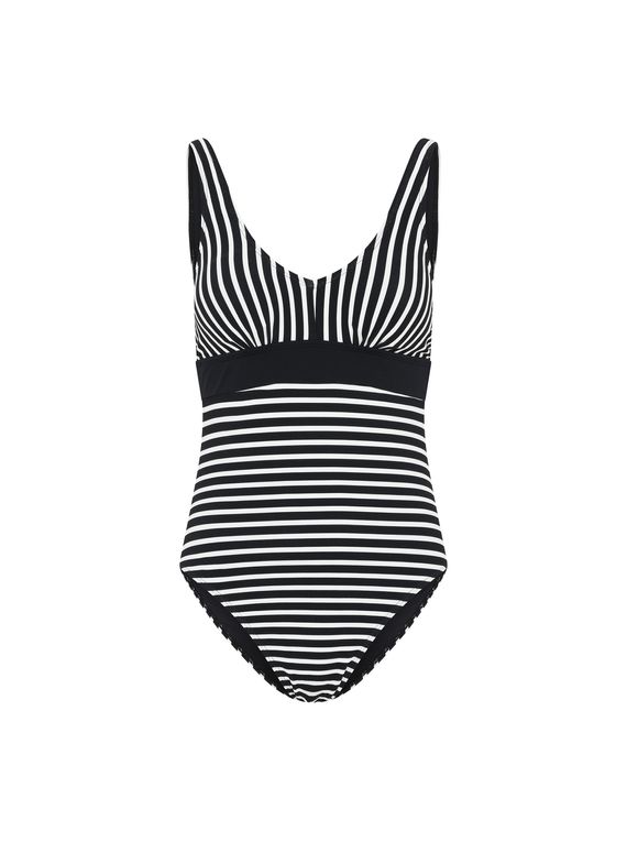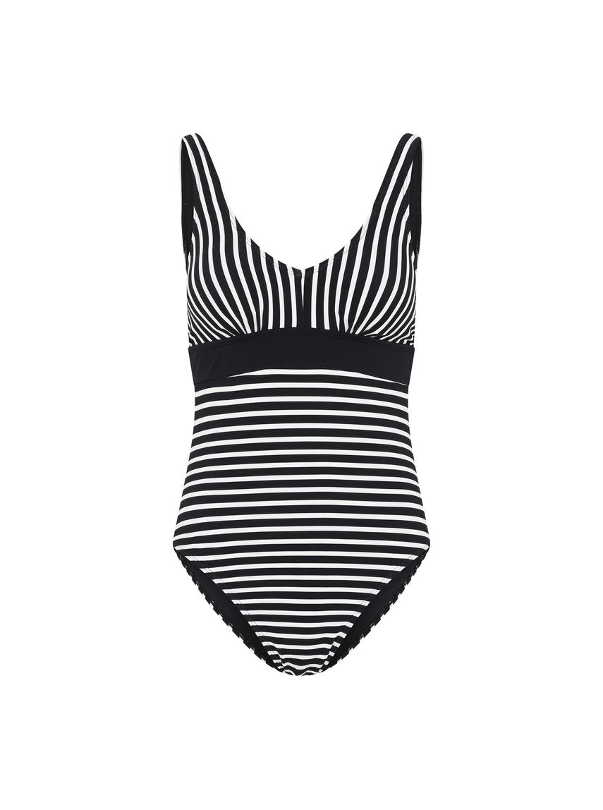Breið, svört teygja undir brjóstum og yfir á bak.