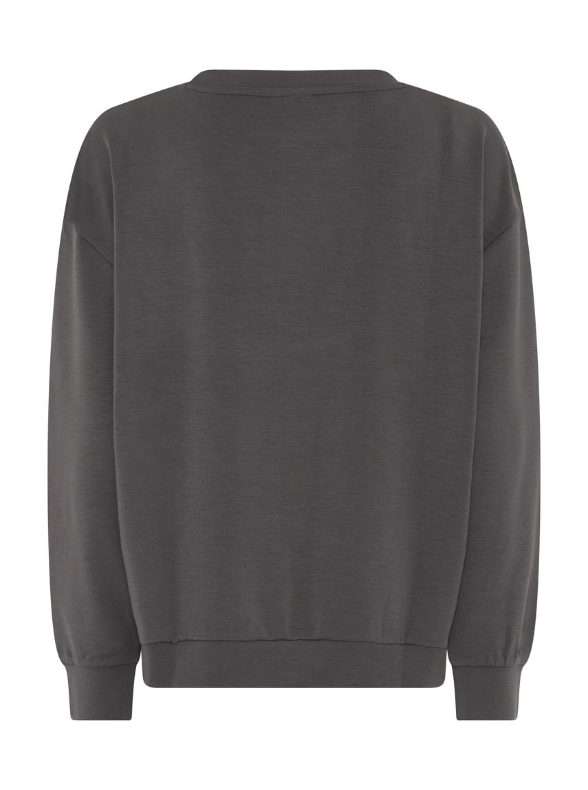 Rúnað hálsmál með grannri líningu.