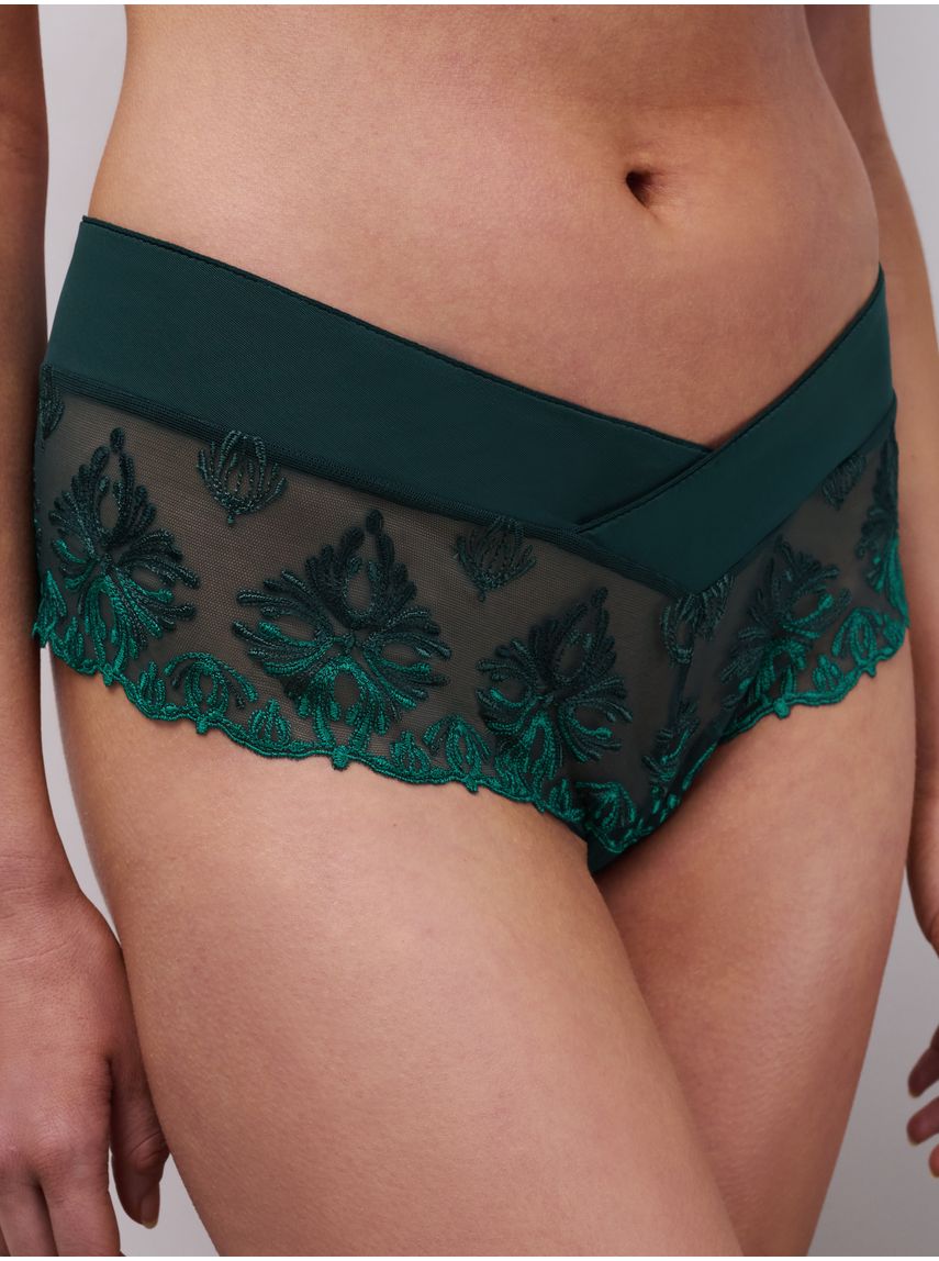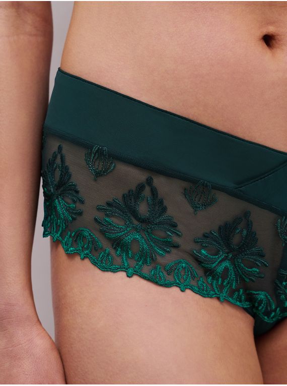 Dökkgrænar með glæsilegri blúndu með emerald grænu ívafi.