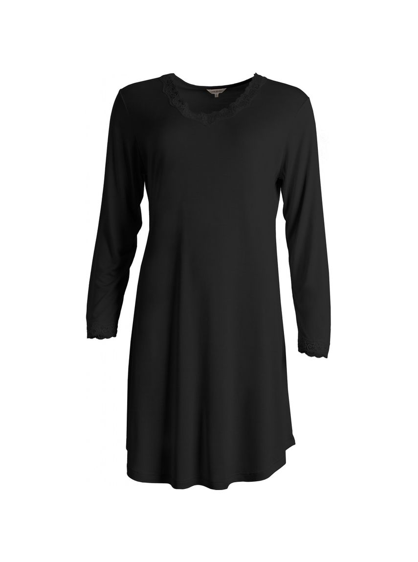 Fínleg, mjúk blúnda í V-laga hálsmáli og neðan á ermum.