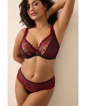 Svartar með rauðri blúndu í blómamynstri að framan.