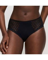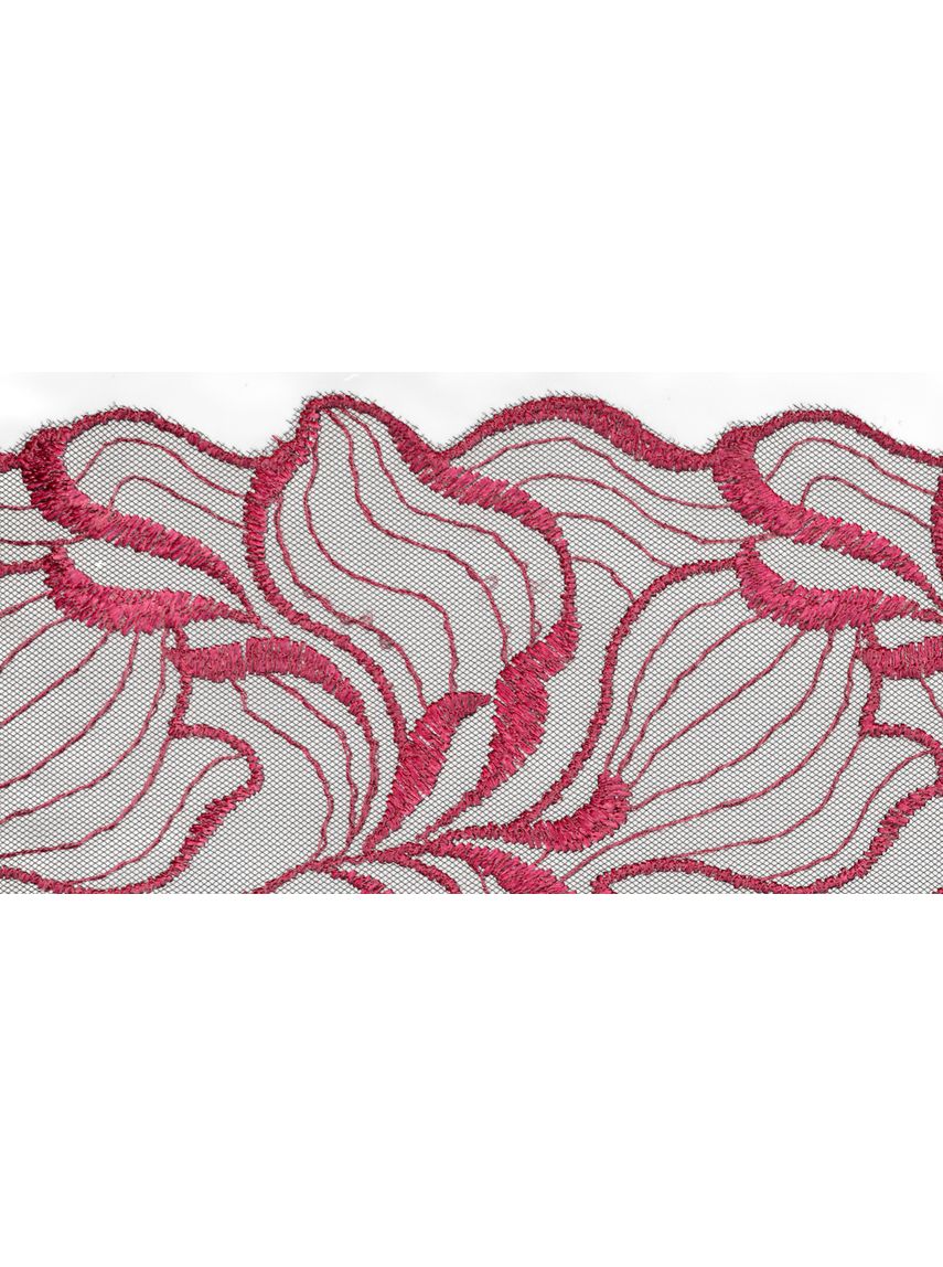 Svartur með rauðri blúndu í blómamynstri.