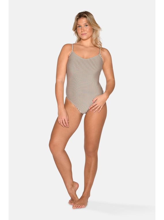 Beige og brúnar rendur.