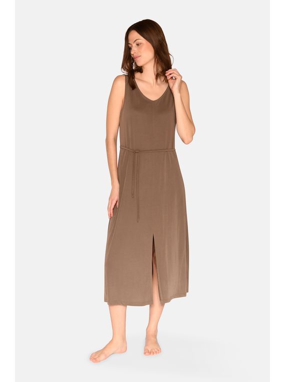 Saumur að framan með klauf neðst á kjólnum.