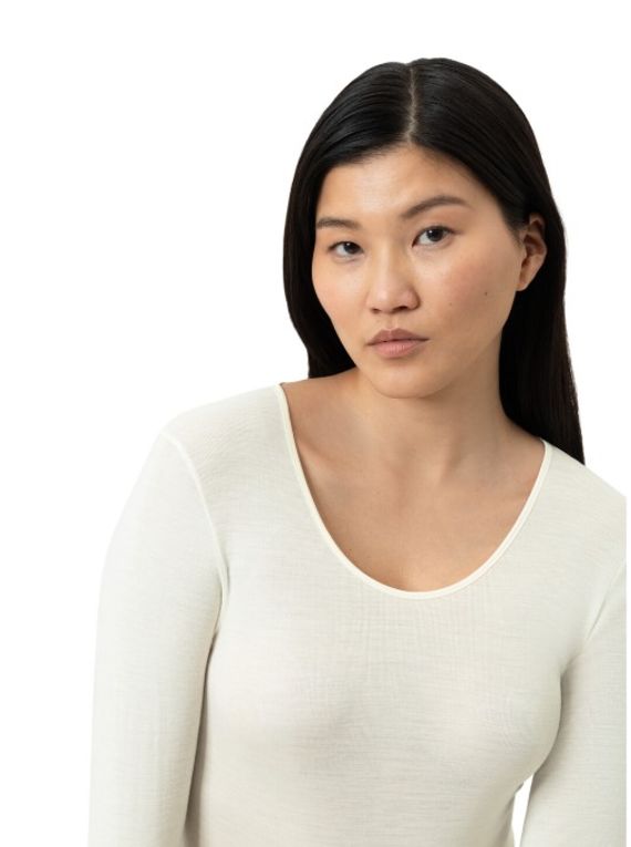 Ull og silki undirfötin frá Mey eru bæði létt og þægileg. Þessi fullkomna blanda af merino ull ásamt silki heldur líkamanum í góðu jafnvægi jafnt í hita og kulda. Merino ullin frá Mey er lífrænt vottuð og hefur vakið mikla athygli fyrir eiginleika sína. Raki og sviti frá húðinni helst í innsta lagi ullarinnar svo að hún virðist vera þurr viðkomu. Húðin fær að anda og ullin skilar rakanum aftur í andrúmsloftið. Silkið er svo afar slitsterkt og gefur yndislega mýkt.